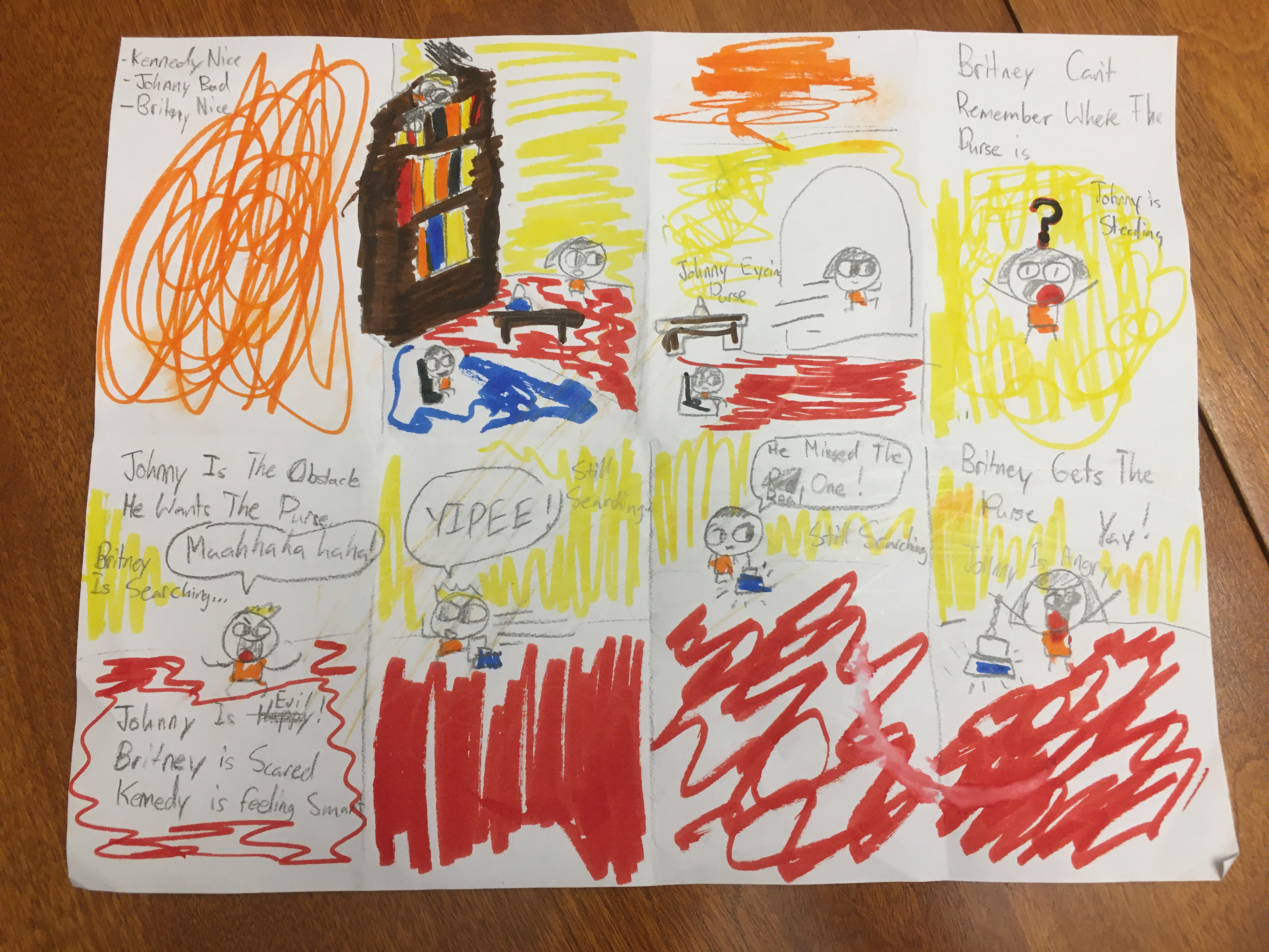 How this worked: Children were asked to bring to life several scenarios that I created for them. What if Tizzy found money in the library? How would Tizzy and Curtis react? What would be the best course of action to bring justice to the situation? What would Curtis do if Tizzy began bullying him by ordering him to steal the money instead? What other scenarios could take place?