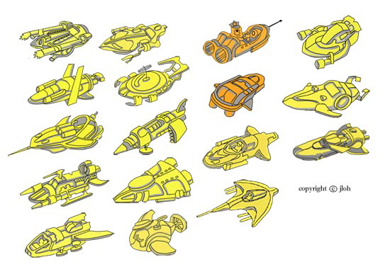 I illustrated these ships keeping in mind that each ship was sized to either two or three square tiles. Each ship had to be designed uniquely so that looking at it on a small screen, the ships could be identifiable.